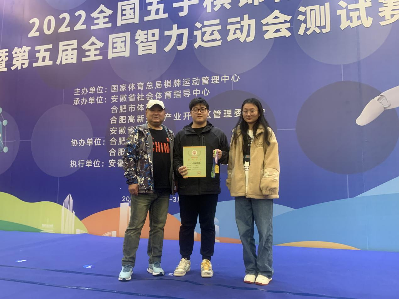 3月18日,由國家體育總局棋牌運動管理中心主辦的2022全國五子棋錦標賽暨第五屆全國智力運動會測試賽在安徽合肥舉行。我校付叢睿同學榮獲男子公開組冠軍。
