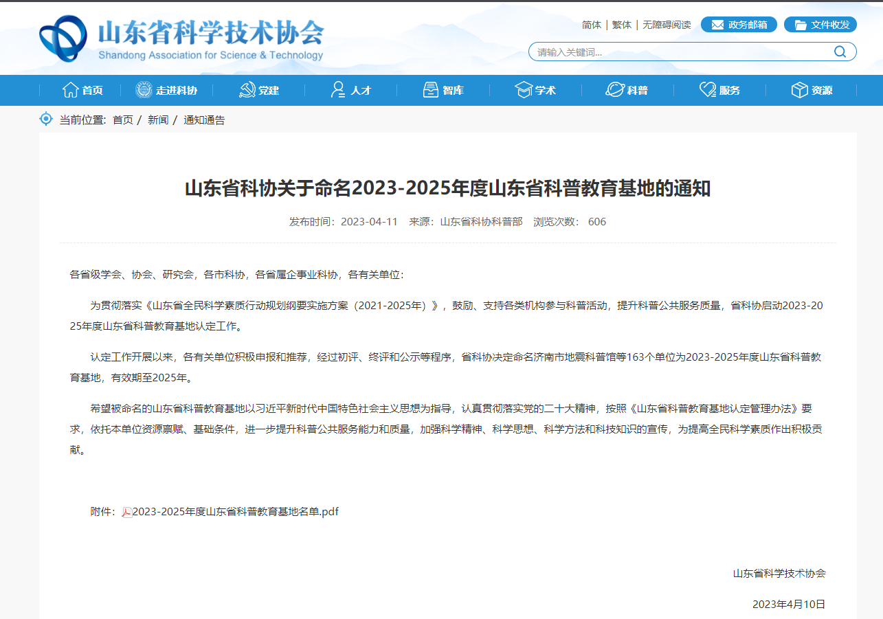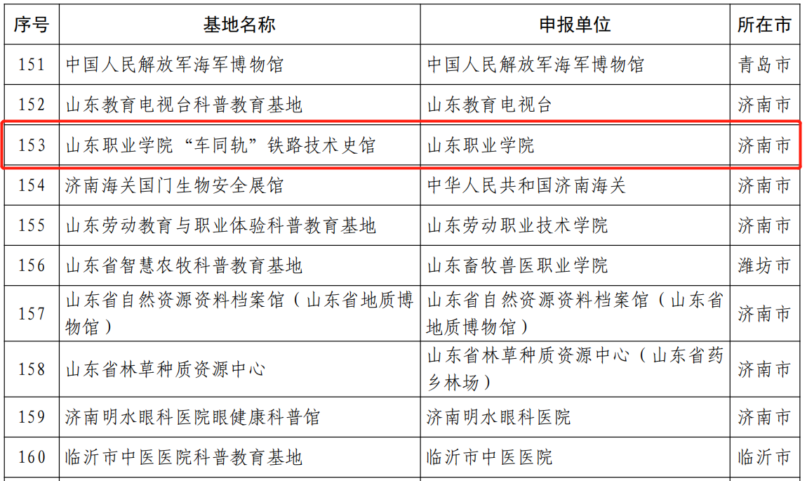 4月11日,山東省科協發布《關于命名2023-2025年度山東省科普教育基地的通知》,經各單位申報、省科協推薦、專家評議,163家單位命名為山東省科普教育基地,我校申報的“車同軌”鐵路技術史館榜上有名,獲批2023-2025年度山東省科普教育基地。