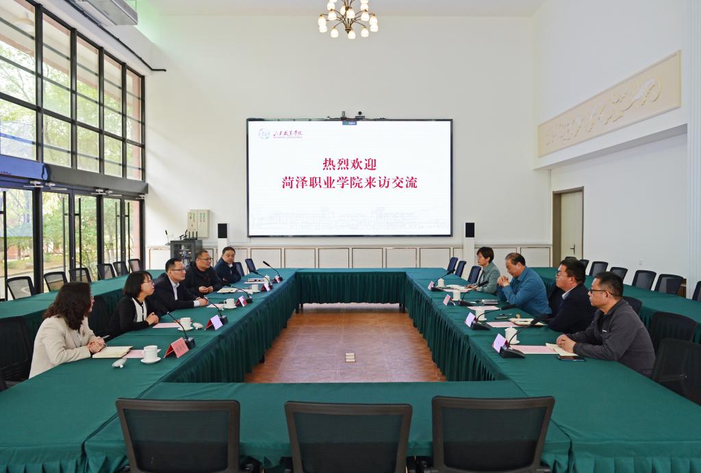4月13日,菏澤職業學院黨委委員、副院長王朝景一行4人到我校考察交流,院長郭培謙出席會見。