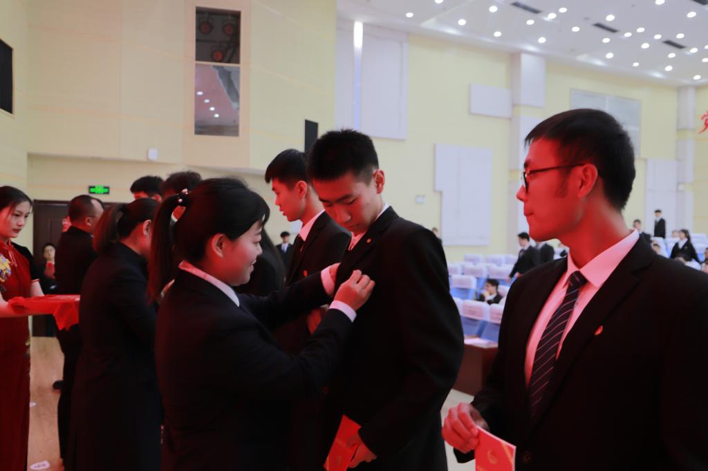 入團儀式在莊嚴的國歌聲中拉開帷幕。團委副書記齊真宣讀了學校《關于發展2023年上半年新團員的決定》。各書院團總支書記為43名新團員頒發團章,佩戴團徽。