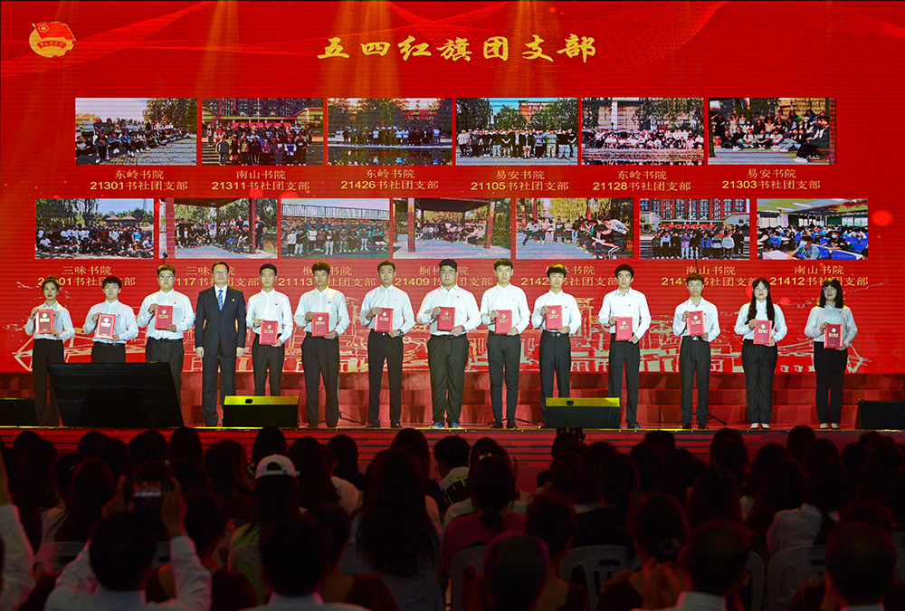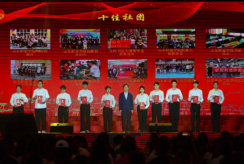 團委副書記宋高妮宣讀五四表彰決定,授予劉延晨等253人“優秀共青團員”榮譽稱號,授予張宏銘等10人“十佳”共青團員榮譽稱號,授予石玉竹等138人“優秀團學干部”榮譽稱號,授予黃忠意等10人“十佳”團學干部榮譽稱號,授予付叢睿等75人“優秀青年大學生”榮譽稱號,授予姚祥全等10人“十佳”優秀青年大學生榮譽稱號,授予丁高研等40人“疫情防控志愿服務優秀個人”榮譽稱號,授予石玉竹等10人“志愿服務先進個人”榮譽稱號,授予董鈺鐸等10人“志愿服務特別貢獻獎”榮譽稱號,授予三味書院21117書社團支部等13個團支部“五四”紅旗團支部榮譽稱號,授予南山書院團總支“五四”紅旗團總支榮譽稱號,授予“山東職業學院智能制造協會”等10個集體“十佳”社團榮譽稱號,授予付叢睿等10人“十佳”社團個人榮譽稱號,授予徐瑞霞等10人“十佳”社團指導教師榮譽稱號。