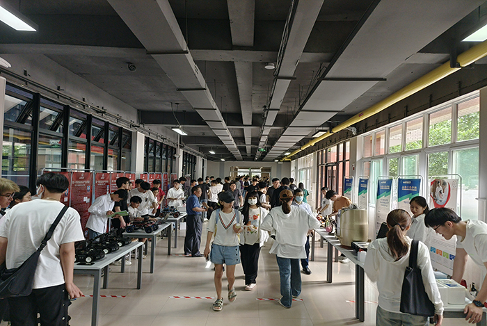 在各展區,同學們將自主制作的科技發明產品、3D打印模型、VR作品、山楂汁、酵素、黃酒、新能源電池等創新創業成果進行了精彩展示,并通過細致入微地講解,向廣大師生介紹了創新創業項目的基本情況和孵化歷程,進而激發了大家的創新創業興趣和熱情。