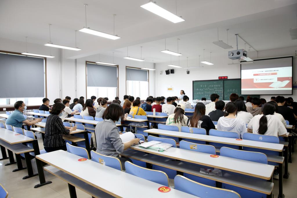在9404教室,趙鳳文認真聽取了馬克思主義學院教師王珍娟講授的《毛澤東思想和中國特色社會主義理論體系概論》課程。趙鳳文一邊認真聽取教師的講授,一邊仔細觀察教師教學組織、學生聽課狀態和學習效果,同時認真作聽課記錄。