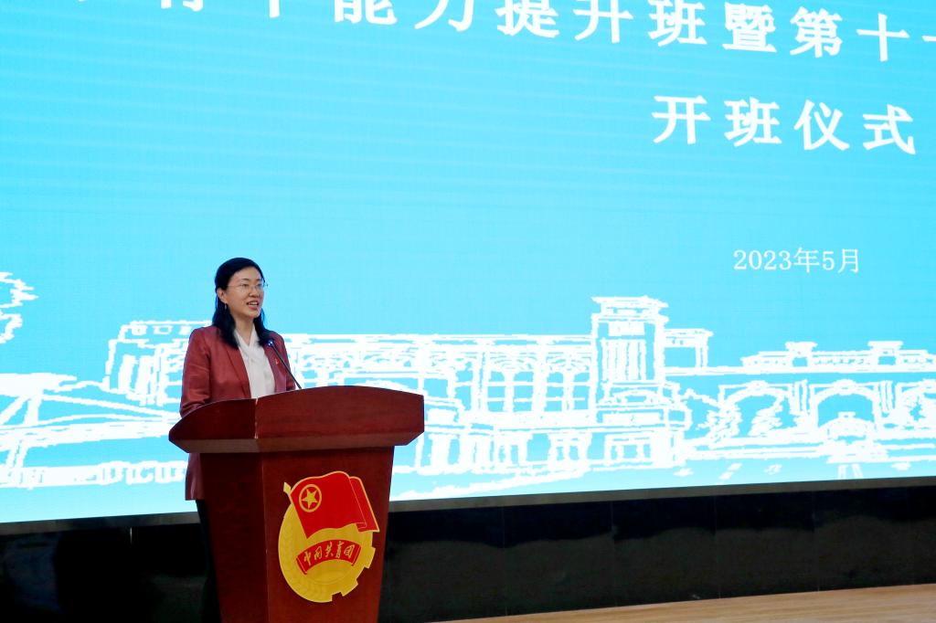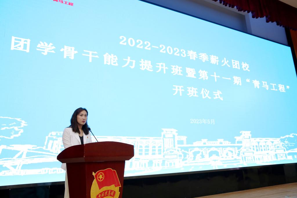 組織統戰部部長劉紅做開班致辭,向大家介紹了“青馬工程”的發展歷程,并對青年學子提出四點希望與祝福:一要深化理論學習,堅定理想信念,利用“青馬工程”平臺,帶頭掀起全校學生學習習近平新時代中國特色社會主義思想和黨的二十大精神的熱潮;二要加強實踐鍛煉,增強干事本領,注重知行合一,帶著對黨的理論成果的學習體會,在各項實踐活動中加深理解,更好地消化吸收,改造自己的主觀世界;三要緊密聯系學生,提高服務意識,真正使直接聯系、直接服務和直接引導青年成為團學干部的行動自覺、工作常態;四要加強作風建設,發揮示范作用,時時處處以身作則、嚴于律己,堅定不移聽黨話、跟黨走。