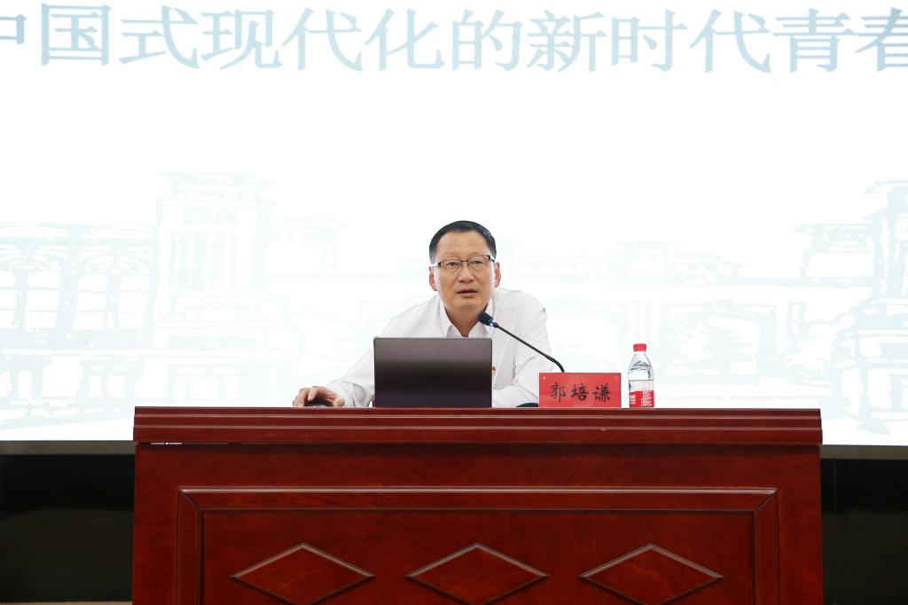 郭培謙以《中國式現代化理論闡述與新時代的青春擔當》為題,從中國式現代化理論體系的觀念基石、中國式現代化理論體系的歷史變革、中國式現代化理論體系的理論硬核、習近平總書記對青年的青春寄語、中國式現代化的新時代青春擔當等五個方面進行了詳細講解和理論闡述。