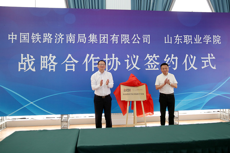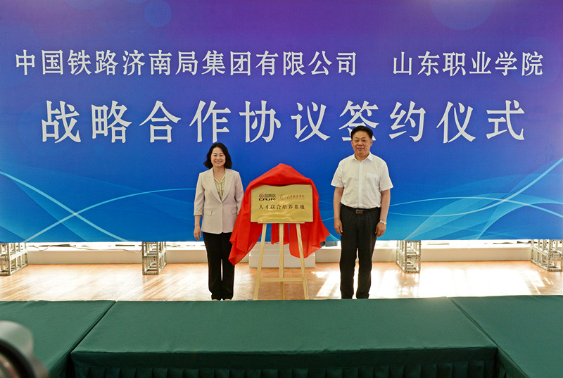a一級黃色片:王新春、趙鳳文代表雙方為“國鐵濟南局 山東職業學院人才聯合培養基地”揭牌。
