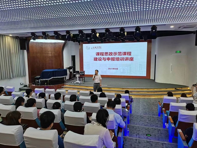 為進一步提升教師課程思政教學能力,助力省級和國家級課程思政示范課程評選,6月14日上午,我校在多功能音樂廳舉辦課程思政示范課程建設與申報培訓講座,邀請山東省高校課程思政研究中心副主任、齊魯工業大學(山東省科學院)課程思政研究院副院長李紅霞教授作講座。副院長王紹軍出席活動并講話,活動由職業高等教育研究院副院長步文萍主持。