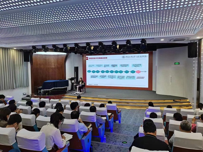 李紅霞以《課程思政示范課程建設與申報》為題,結合具體的課程思政示范課程建設案例,從課程思政示范課程建設背景、課程思政示范課程申報條件與要求、課程思政示范課程建設常見誤區等方面詳細地向現場教師闡述了如何建設并建好一門省級和國家級課程思政示范課程。