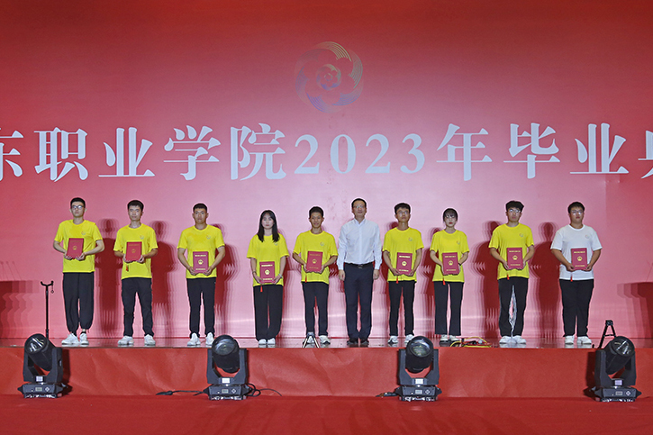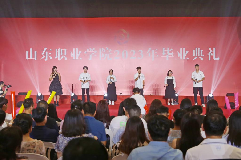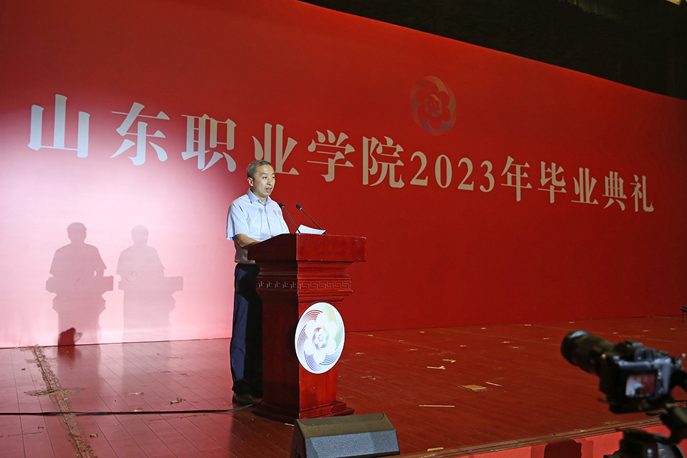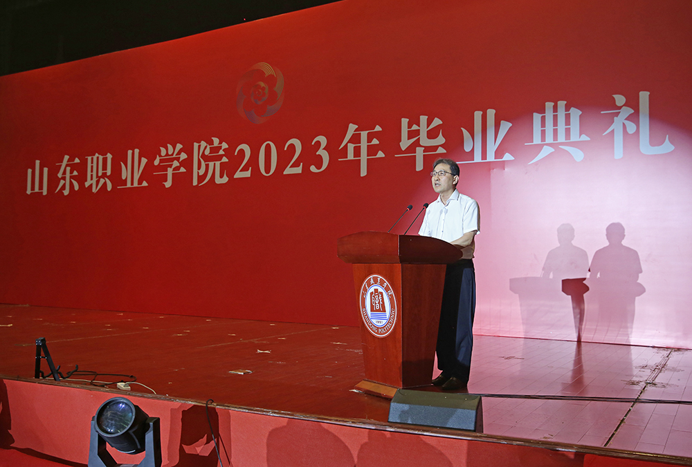 典禮儀式上,副院長郭鵬宣讀了《山東職業學院關于準予2023屆畢業生畢業的決定》。儀式上表彰了2023屆獲得“山職之星”榮譽稱號學生、2023屆國家獎學金獲獎學生、2023屆省政府、濟南獎學金獲獎學生、山東省2023 屆優秀畢業生。黨委書記趙鳳文、院長郭培謙、副院長郭鵬、輔導員老師和學業導師為受表彰學生頒獎,并向優秀畢業生代表頒發畢業證書。