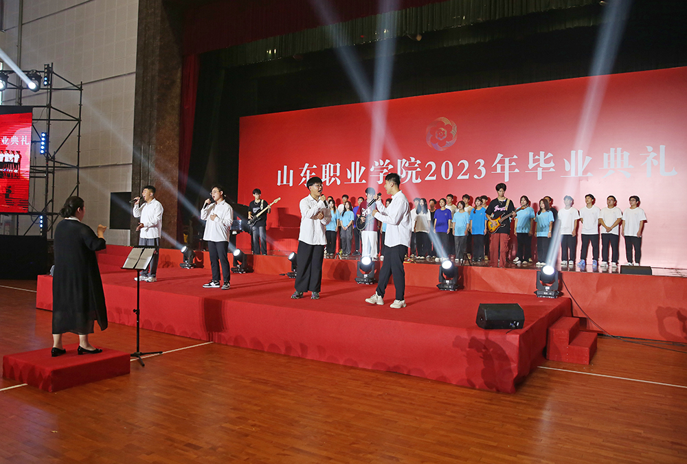 典禮現場,《鳳凰花開的路口》《舞蹈live forever》《后來》《干杯》《稻香》等歌舞演出,感動全場,同學們在歌聲、歡呼中迎接著自己的新征程。畢業典禮在合唱《海闊天空》中落下帷幕。
