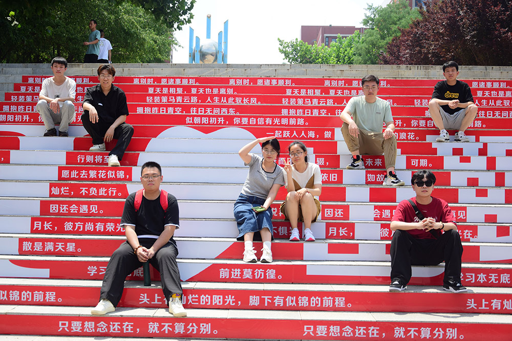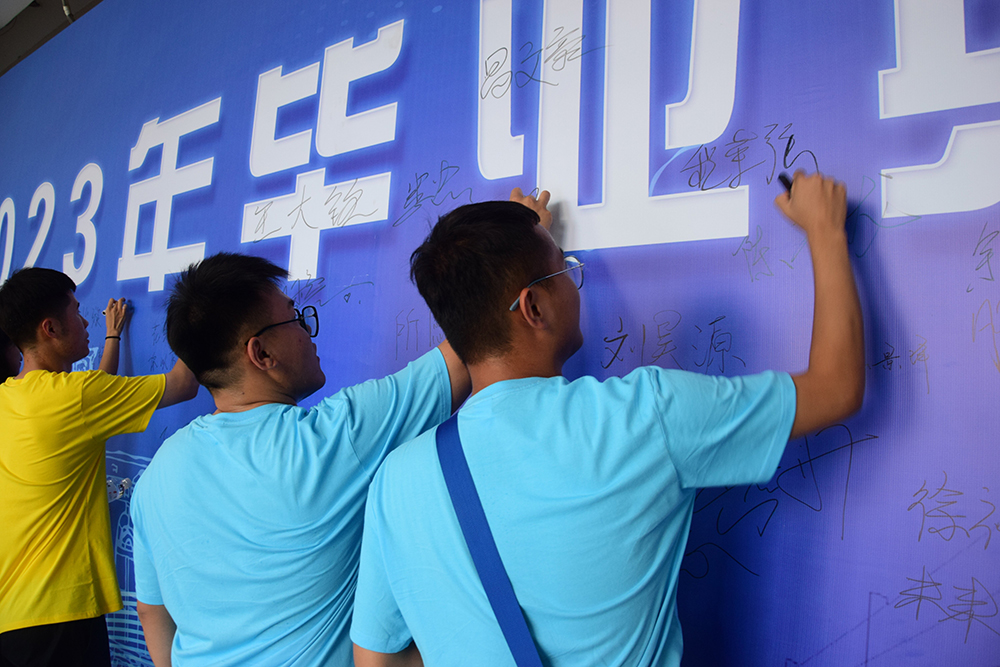 會場內外,中間廣場精心設計的畢業季展板,三角地、至谷大屏一條條飽含深情的條幅標語,給畢業季帶來更多的依依惜別與祝福,此去繁花相送,再遇依舊深情。