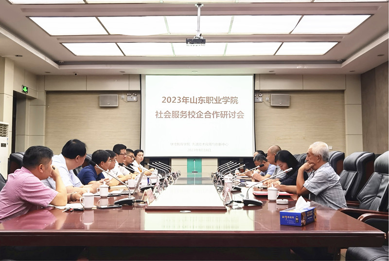為匯聚企業優質資源,拓展社會服務渠道,8月18日,我校2023年社會服務校企合作研討會在解放路校區召開。中國鐵路通信信號集團濟南工程有限公司紀委書記武慶志、七兵堂集團股份有限公司董事長謝清森、山東文府教育咨詢有限公司總經理孫巖、山東大國治禮集團黨支部書記、政務事業部部長張效平、中國(深圳)教育企業股份有限公司副總經理趙言志、山東江教教育咨詢有限公司副總經理孫永康、濟南弘正傳統文化研究院院長喬松、山東達辰智能科技有限公司副總經理許梅、安能集團第一工程有限公司唐山分公司副總經理岳俊霖、金貓電子商務科技(山東)有限公司副總經理張璐出席會議,先進技術應用與創新中心主任王廣勇及學校相關人員參加會議。會議由繼續教育學院院長孫洪濤主持。