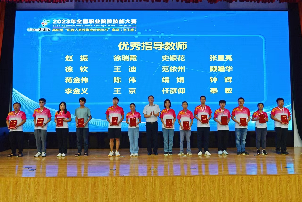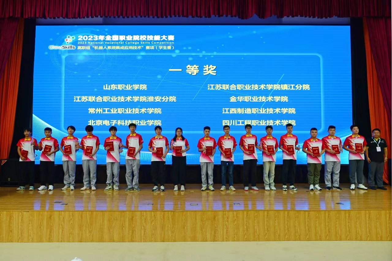 8月20日,2023年全國職業院校技能大賽高職組“機器人系統集成應用技術”賽項學生賽在我校落下帷幕。我校智能制造學院胡德晨、呂建峰組成的參賽隊,在趙振、徐瑞霞兩位老師的指導下,與來自全國28個省區市的79支參賽隊同場競技,最終以總成績第1名獲得全國一等獎。趙振、徐瑞霞獲“優秀指導教師”。