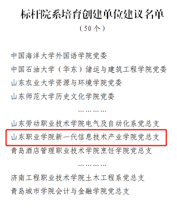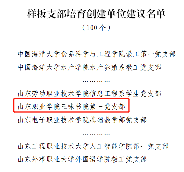 近期,中共山東省委教育工委公布了山東省第三批新時代高校黨建工作示范高校、標桿院系、樣板支部培育創建單位名單,我校新一代信息技術產業學院黨總支獲批省黨建工作標桿院系培育創建單位,三味書院第一黨支部獲批省黨建工作樣板支部培育創建單位。