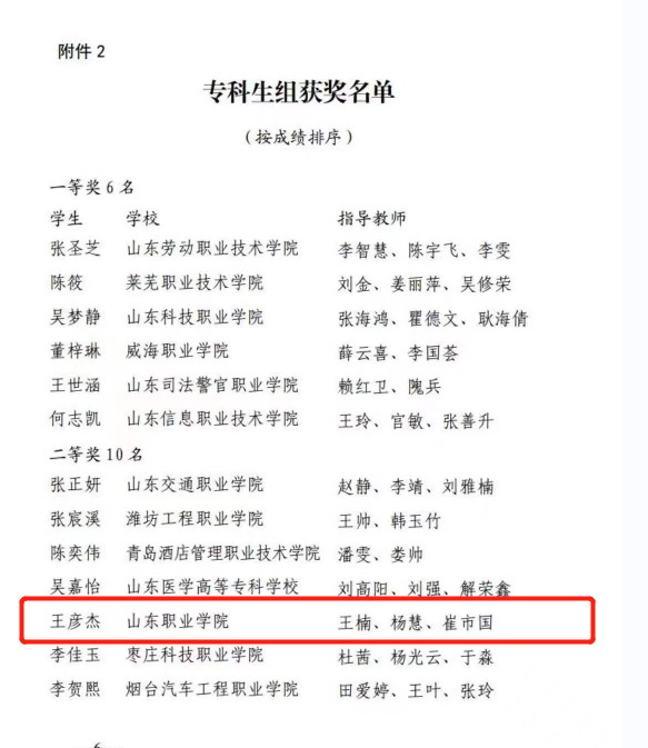 近日,山東省教育廳公布了山東省大學生學習習近平新時代中國特色社會主義思想成果展示活動的獲獎名單,我校王彥杰同學在馬克思主義學院教師王楠、楊慧、崔市國指導下,榮獲二等獎。