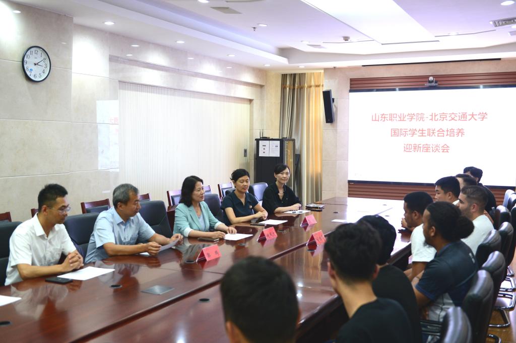 9月7日下午,我校在圖書行政樓701會議室召開了與北京交通大學聯合培養國際學生迎新座談會。黨委書記趙鳳文,副院長郭鵬出席座談會并與國際學生親切交流。