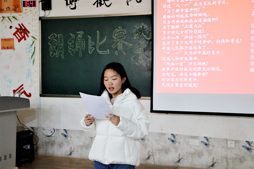 通過朗誦愛國經典名篇,同學們接受了一次深刻的愛國主義教育,進一步增強愛國情懷,堅定理想信念。參賽選手們紛紛表示,要將朗誦比賽中展現出的良好風貌、言行修養延續到今后的學習、生活中去,把愛國情感化作實際行動,牢固樹立新思想,時刻牢記新使命,刻苦錘煉新本領,奮發展現新作為,為實現中華民族偉大復興的中國夢努力奮斗,為實現富強民主文明和諧美麗的社會主義現代化強國貢獻青春力量。