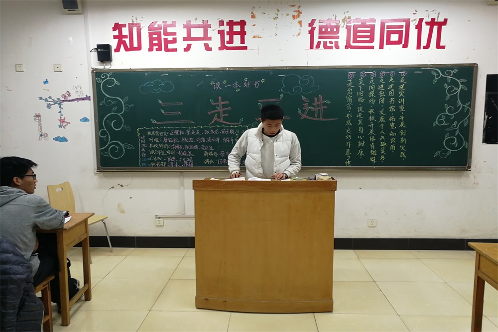 “三走三進”,即走出宿舍、走下網絡、走向操場;走進社團、走進圖書館、走進實訓室。“三走三進”活動旨在使同學們能夠擺脫網絡依賴性、身體惰性,提高體質,發展個人能力。通過主題班會,同學們在思想認識上發生很大轉變,紛紛表示要養成良好的生活學習習慣,做到學習生活有目標、有計劃、有行動、有意義,真正實現自身的全面發展。