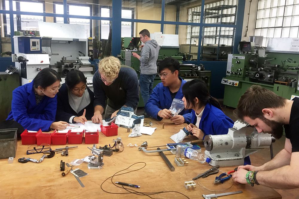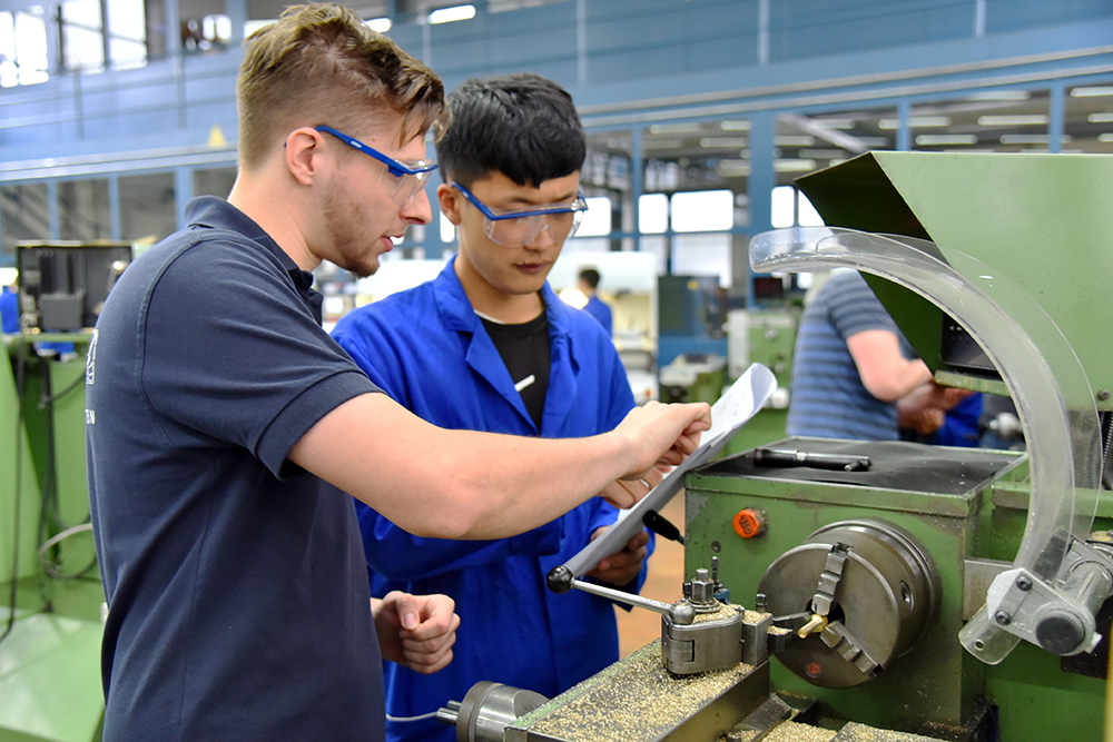 項目開始的第一周為適應性學習和操作。學院2位教師和6名學生在德方師生的幫助下,熟悉掌握德方機器設備的性能和使用方法,同時中德雙方學生一對一組成小組,加強交流磨合。經過一周的訓練提升,雙方學生越來越熟悉,默契度逐漸上升,一個小小的手勢或表情,彼此就會明白對方意思。