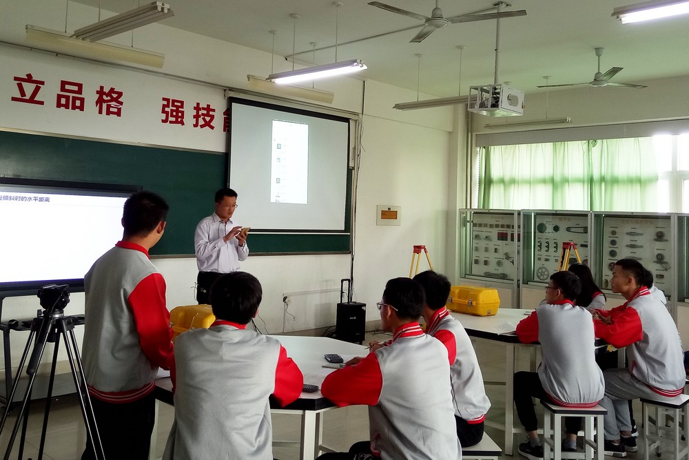 本次公開課的內容是《鐵道工程測量》中“視距測量”章節,學生們普遍認為理論性太強、難于理解。針對這一情況,主講教師鄭恒首先以電視劇《亮劍》中李云龍目測地形距離的一段劇情引入課程,然后通過展示狙擊手鏡頭和經緯儀鏡頭的對比使教學目標逐步呈現,期間鄭老師邊講解知識邊提出問題,利用視頻等可視化的手段指導學生操作,并設置了搶答、討論、隨堂測驗、點評等環節。值得注意的是,這一系列的課堂教學均是通過手機APP來輔助實現,大家“玩手機”學習知識,積極性被充分調動起來。