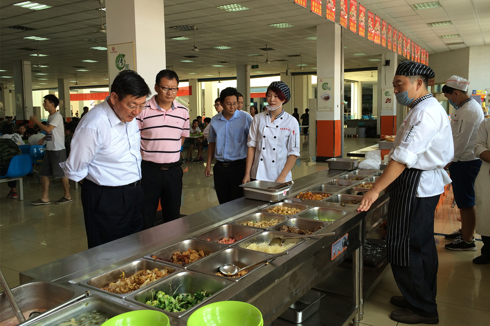 為做好十九大期間學院食品衛生安全工作,確保各項工作順利進行,近期,學院黨委書記王榮昌、院長秦河分別走進食堂開展安全衛生專項檢查,副院長郭培謙及有關部門負責人陪同檢查。