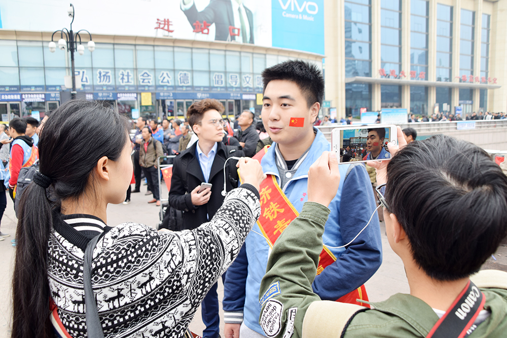 鐵道供電與電氣工程系青年志愿者車站做志愿觀盛況為祖國加油點贊