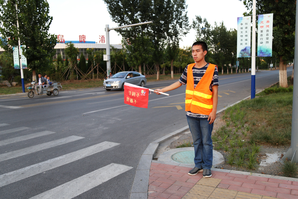 “同志,您的自行車走在了機動車道上,請往后退一點”“老人家,現在是紅燈,為了您的安全,請綠燈亮的時候再行”…… 志愿者利用課余時間在十字路口旁、各道路岔口邊、城區內街道等公共場所,進行志愿服務。活動中,志愿者不時揮舞著小紅旗,提醒一些違章市民,同時熱情地向市民宣傳文明交通知識。志愿者們文明的舉止、和藹的態度、規范的勸導、溫馨的提醒,成為街頭一道亮麗的風景線。