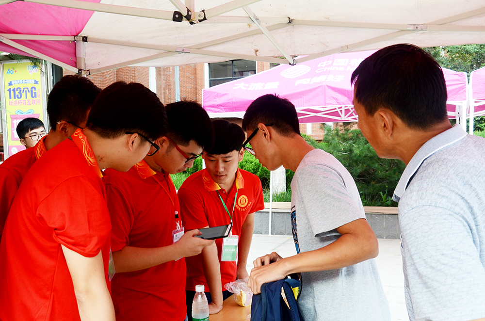 迎新現場,身穿紅色志愿者服裝的大二、大三的學生干部們在各服務點為新生和家長們提供著熱情周到的一站式服務,從新生報到確認、校園卡領取及使用說明到繳費情況確認和住宿通知單領取以及入住宿舍樓,志愿者與新生助理密切配合,為廣大新生報到帶來了極大的便利。新生從進入校門到入住宿舍,兩點一線看似枯燥的工作流程卻時刻體現出服務育人的宗旨,彰顯著服務到“家”的熱情。熱情、細致、周到、規范、有序的迎新工作,贏得了新生及家長的一致好評,同時也充分展現了電氣學子良好的精神風貌。“紅衣小哥”們一路灑下的汗水和表達的話語,是“新成員”對“新家”的第一印象,更是學長對新生所能表達的最溫暖的歡迎。