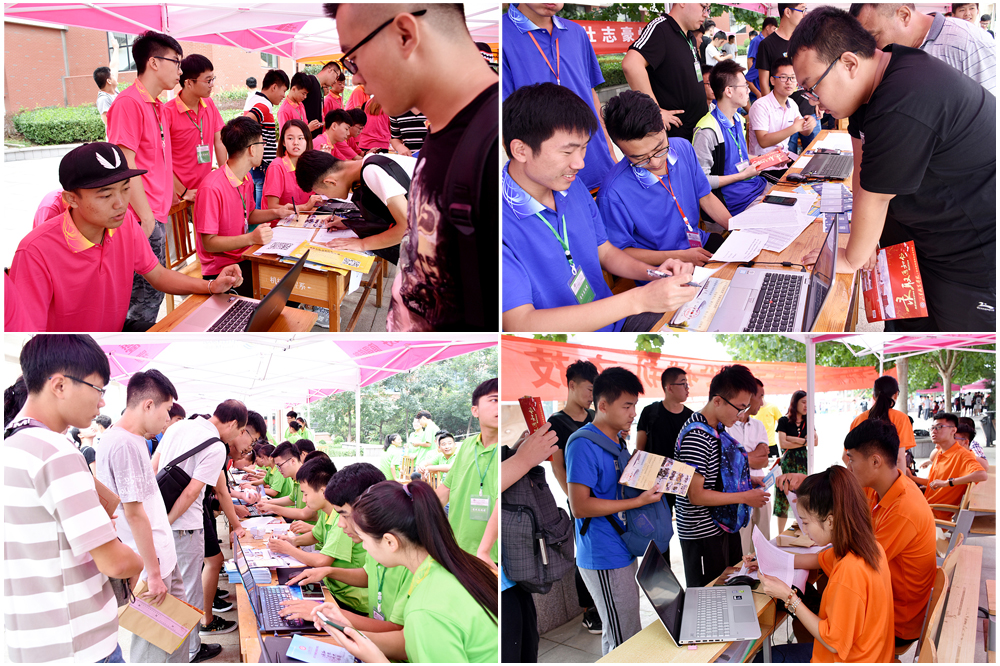 在各系迎新接待處,系領導、輔導員、班主任、部分專業教師為新生講解、辦理各項入學手續并釋疑解惑。此外,各系還從高年級選拔了多名優秀學生擔任新生班主任助理,全程參與到新生入學的各項工作中。為確保每一名家庭困難學生順利入學,學院設立了“綠色通道”服務站和學生資助咨詢服務站,保證家庭經濟困難學生順利入學。親切的微笑、無微不至的服務,使新生和家長們切實感受到了山職大家庭的溫暖。