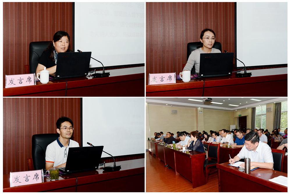 8月30日至31日,我院召開2017年暑期工作研討會。會議邀請省委高校工委副巡視員劉欣堂作《深入學習貫徹全國全省高校思想政治工作會議精神》輔導報告,學院黨委書記王榮昌在會上講話,院長秦河總結暑期重點工作并對下半年重點工作作部署安排。學院艾菊蘭、王少妮、殷巖鋒等三位教師圍繞育人主題分別作了主題報告。學院領導班子成員、教授、正科級及以上干部參加會議。
