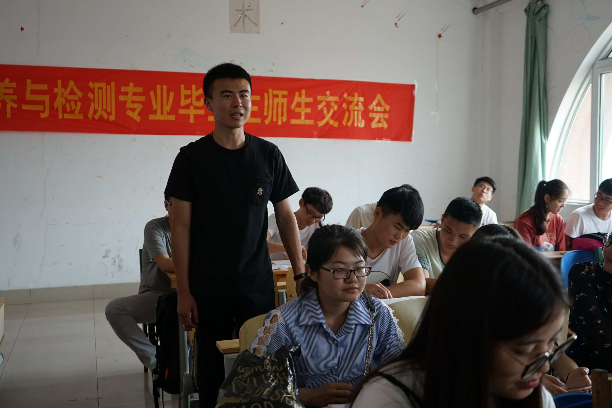 交流會現場氛圍融洽,畢業生們針對大學兩年的學習生活和一年的實習生活暢所欲言,圍繞專業課程設置、畢業實習設計、學風教風建設、學生思想教育、就業指導等方面發表了觀點,并就自己大學期間學習生活遇到的問題發表看法,言語中流露出對生物系的熱愛,對專業課老師的感恩和尊敬。敘情誼,話離別,道珍重。隨著時間的慢慢流逝,交流會也接近了尾聲,畢業生們也在戀戀不舍的掌聲中結束了大學生涯中的最后一堂課。