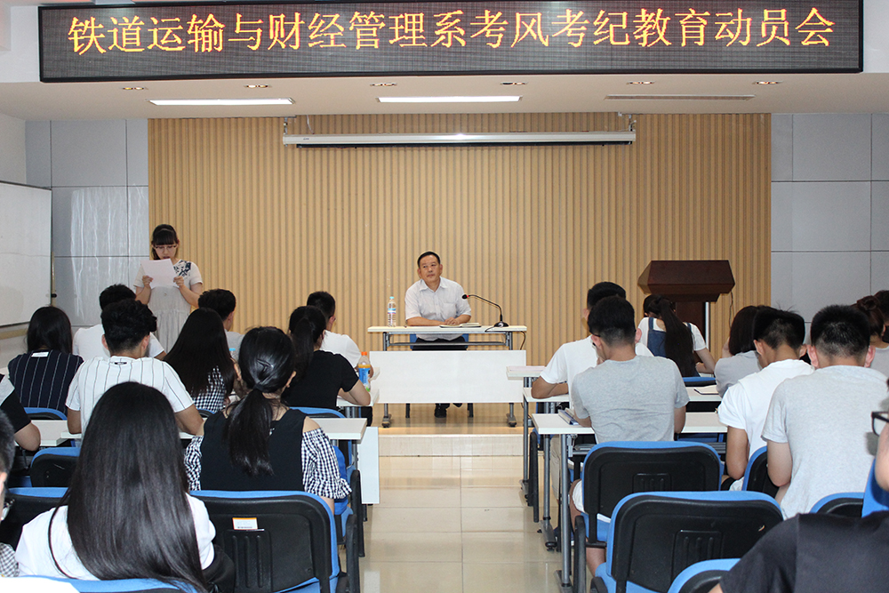 為端正考風,嚴肅考紀,保障期末考試工作的順利進行, 鐵道運輸與財經管理系開展考風考紀教育系列活動。6月27日,召開全系“誠信做人,誠信考試” 考風考紀教育動員會。學工辦主任欒金志主持會議,強調了考風考紀的有關規定、考前注意事項,并號召學生干部要以身作則,誠信考試,弘揚正氣。學生代表宣讀了《誠信考試倡議書》。