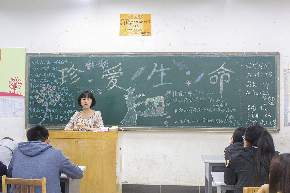 各班班會的黑板報形式多樣、內容豐富,都突顯了“生命只有一次,珍愛生命,才能健康成長”的主題。物流1633班通過小組探討的形式來討論“如何保護自己,珍愛生命”及引發不安全事故的原因有哪些;會計1631班采用演講的方式來謳歌生命之美,引導同學們熱愛生命,熱愛生活;交管1631班采用現場隨機問答的方式來了解學生個人對生命安全的理解。班會上同學們認真聽講,積極回答問題,紛紛表示生命是脆弱的,它給予我們每一個人只有一次,我們必須珍惜。