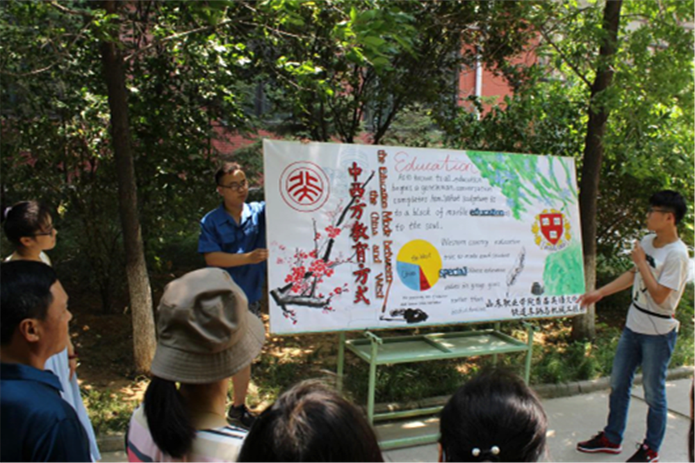 正式的比賽采用現場展示與講解的方式進行,由各系的解說員進行解說,各位教師評委本著公平公正的原則,參觀各系海報,觀看相關PPT,聽取解說員講解,并根據參賽作品的內容、語言、版面以及創意進行綜合評比。各系精心制作的海報配以代表的各具風采的講解,形成了一道獨特的風景。
