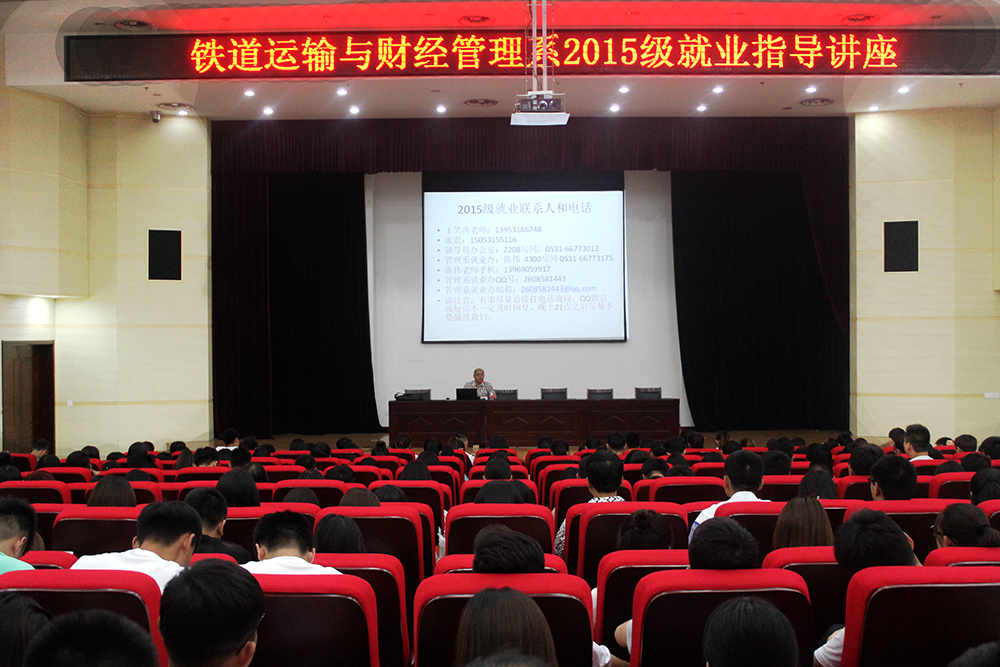 6月5日,鐵道運輸與財經管理系在圖書館西報告廳舉辦2015級學生就業指導講座。系就業辦負責老師陳偉主持講座。