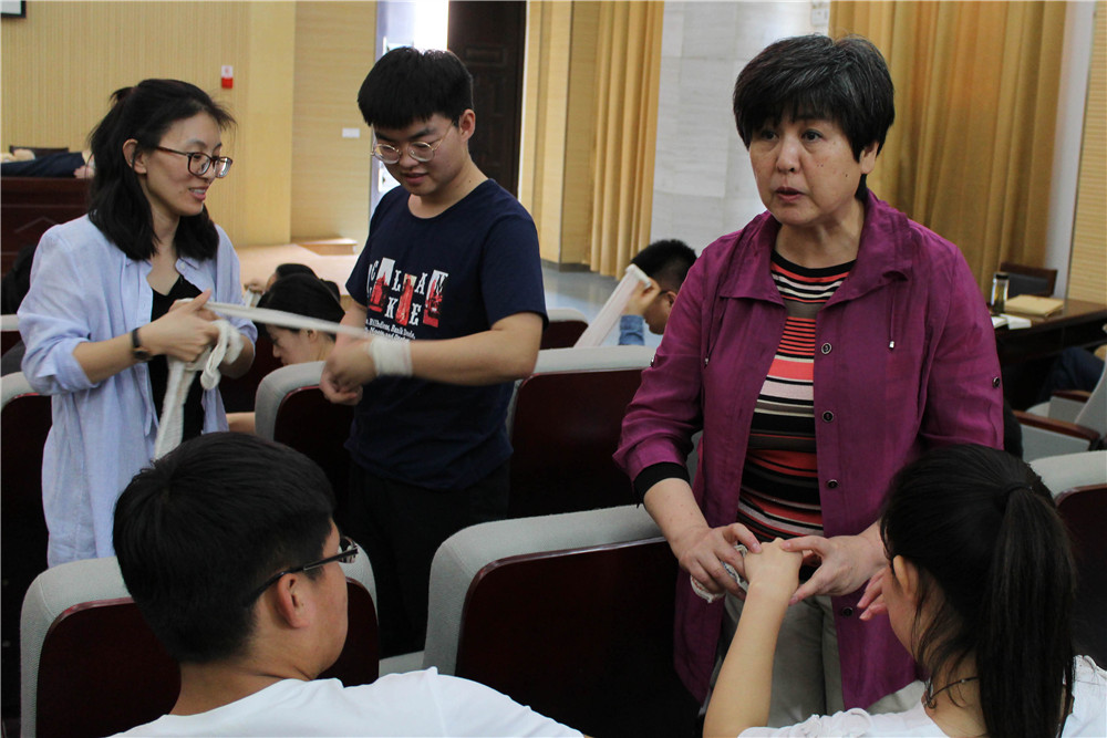 場內是小規模深層次培訓,場外則是大規模應急救護知識普及。此前一天,學院團委組織各系大一同學近500人集體參加了《中華人民共和國紅十字會法》暨學全國紅十字應急救護知識競賽,通過參加競賽幫助大家掌握更多的應急救護知識,提升自身安全保障能力。