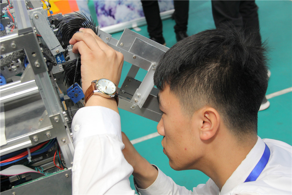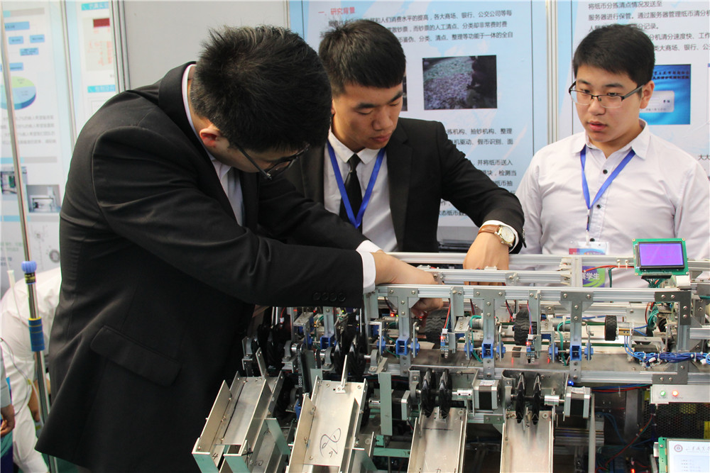 本屆“挑戰杯”大賽以“青春新動能 挑戰創未來”為主題,全省共有88所高校參與其中。經過前期初賽、復賽我院鐵道機車與機電裝備系大學生發明創新協會提報的上述兩件作品從全省5000余件參賽作品中脫穎而出殺入總決賽。參加總決賽的籌備工作得到了鐵道機車與機電裝備系師生的大力支持,本次兩件獲獎作品均由張為賓老師指導,一等獎作品“老有所椅”多功能護理輪椅病床由李明智、勾鈺水等同學制作完成,它是一個能夠進行床和輪椅組合變形的多功能護理輪椅病床,實現了“十秒鐘床變輪椅”,可以進行病人左右翻身、坐起、屈腿、排便等功能,以及進行遠程控制和護理,解決許多腦癱、腦梗、腦血栓等老年長期臥床患者護理病人過程中的諸多不便。該作品以科學的設計、完善的功能得到大賽專家組的一致肯定,甚至獲得相關醫療期開發廠商關注。三等獎作品全自動紙幣清分機由呂志浩、吳鴻遠等同學完成該機器綜合點鈔機驗鈔機清分機多種功能于一身,利用傳感器技術,實現了六種面值的紙幣的高效清分,該作品設計精巧、運轉流暢,成為賽會上人氣最高的作品之一。