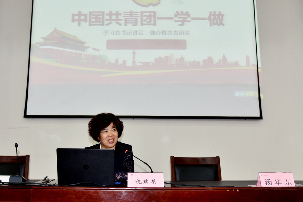 開班儀式上,祝瑞花以“學習習近平總書記講話 做合格共青團員”為題為全體參訓學員講授了一堂生動的團課,系統闡述了開展“學習習近平總書記講話,做合格共青團員”教育實踐的深刻含義和現實意義,指出把握和踐行習近平總書記講話的主旨要求,不僅要擼起袖子加油干,還要結合當前的形勢,培養新理念新思想新戰略,充分結合同學們自身成長、成才和發展,在投身“兩個一百年”奮斗目標中實現自身的良好發展。隨后她從凝聚青年、服務大局、當好橋梁、從嚴治團四個方面對大家提出要求,希望同學們勤于學習、勇于實踐做一個知行合一的人;加強自我管理,樂于自我奉獻,做一個甘于奉獻的模范共青團員;提升自身道德水平和思想境界,結合自身成長把“一學一做”的要求不斷升華,進而成長磨礪為一名優秀的共青團學生干部。