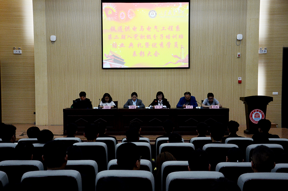 5月8日,鐵道供電與電氣工程系隆重舉行第二期入黨積極分子培訓班結業典禮暨優秀學員表彰大會。系黨總支書記劉紅,學生黨支部書記李亞飛,團總支書記范媛媛、輔導員馮國英、林毅出席結業典禮。