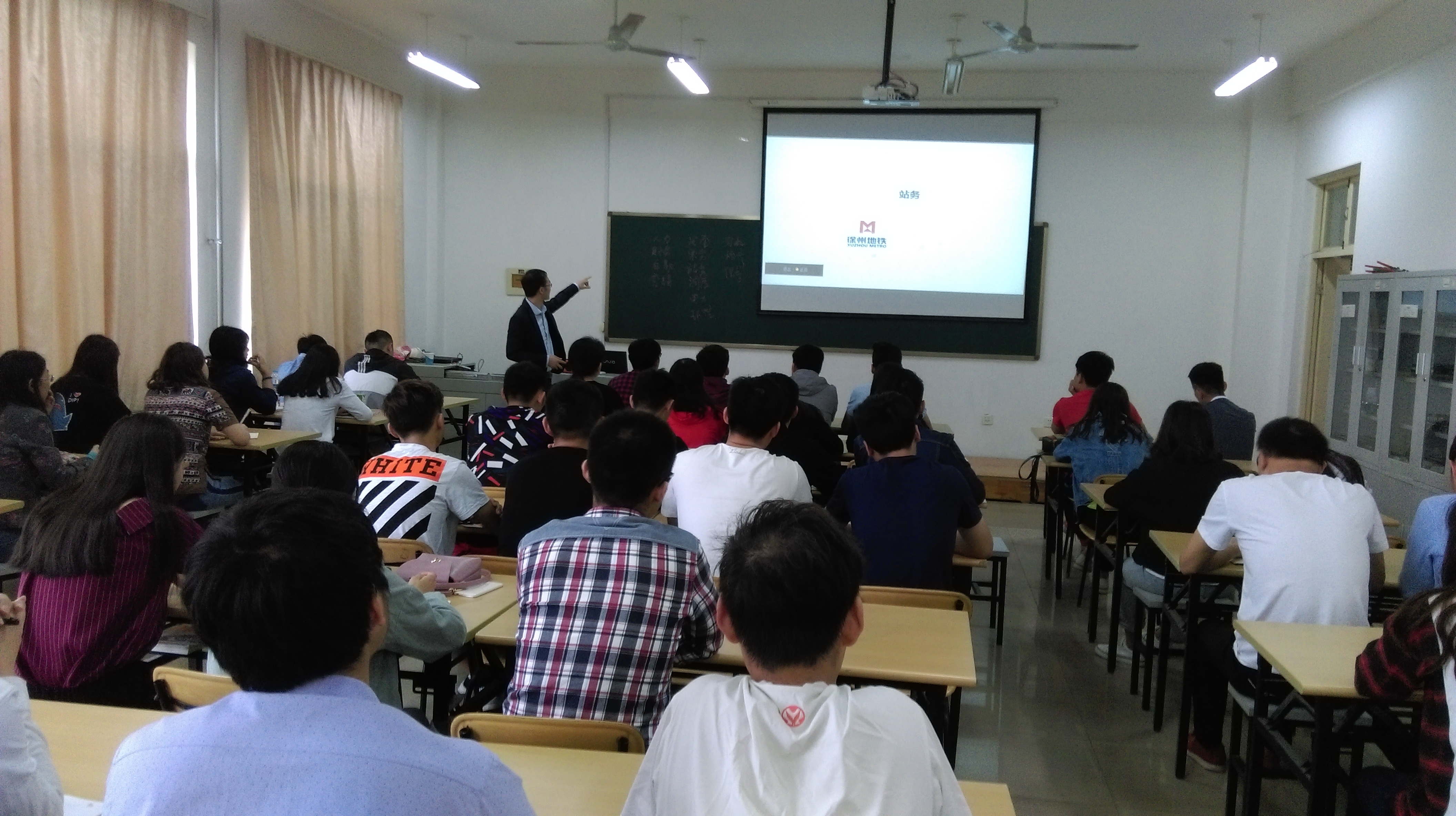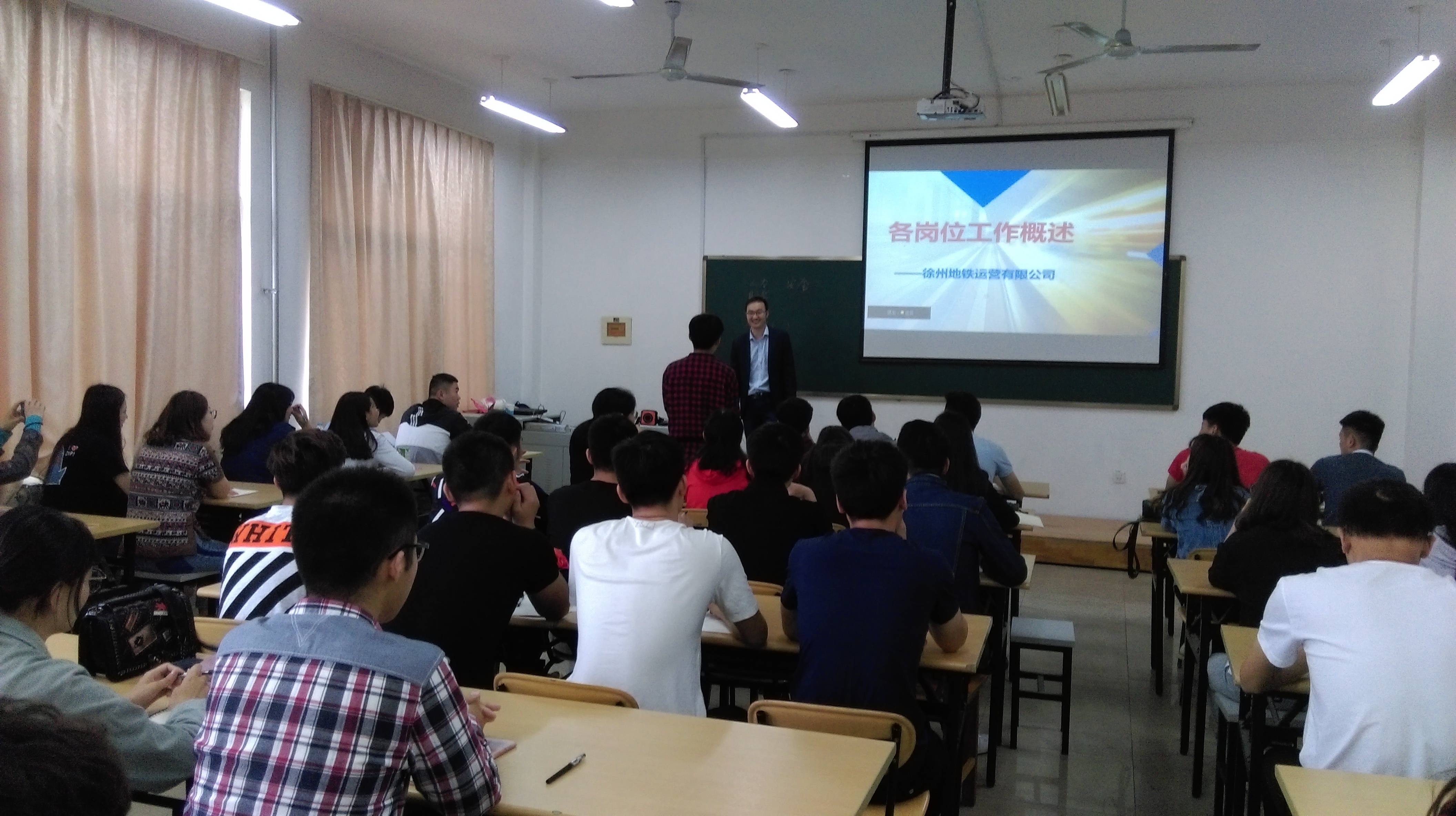 5月4日,城市軌道交通系舉辦了“企業專家進講堂”活動,邀請到徐州地鐵設備運營部黃攀老師擔任主講。課堂中,黃老師結合城市軌道交通運營管理專業知識,就徐州地鐵各崗位工作職責、工作重點、工作要求作了詳細講解。同學們課后表示,通過此次學習,進一步明確了今后努力方向,也對徐州地鐵有了更深入的認識和了解。