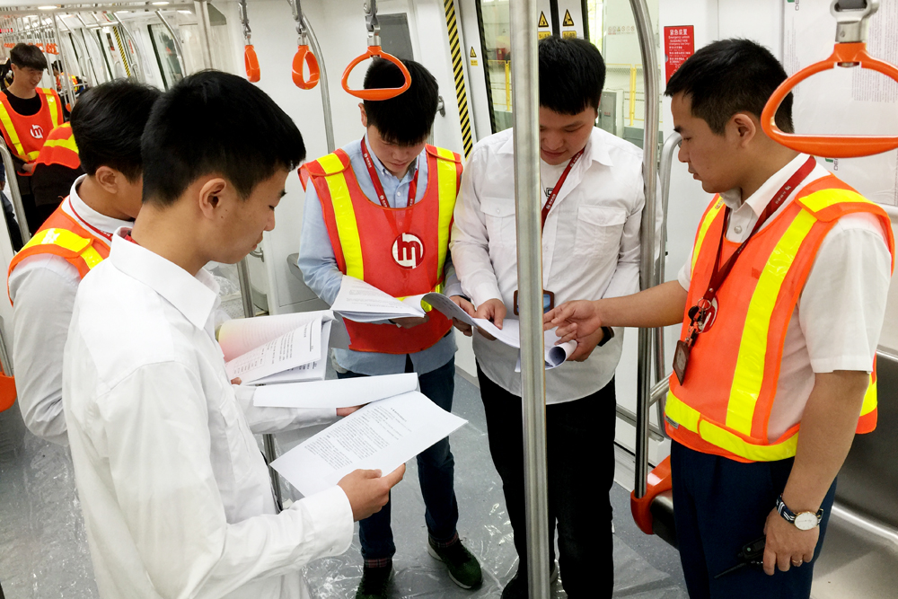 城市軌道交通系城軌車輛專業畢業設計選題與頂崗實習工作密切相關,如《城市軌道交通列車運行控制系統分析及故障排查》《城軌車輛牽引方式的發展與選擇》《直線電機在城軌車輛牽引中的應用》《DC1500V供電城軌車輛輔助供電系統的組成與原理分析》等。在畢業設計實施過程中,還為學生配備校內校外雙導師,校內教師通過電話、QQ、微信、巡回指導等方式指導文件寫作,企業師傅針對學生在撰寫中遇到的實際問題,在工作現場予以解答和指導。目前,該系杭州地鐵訂單班、蘇州地鐵訂單班共有68名應屆畢業生在企業頂崗實習,因為企業開通新線路需要,不能請假返校進行畢業答辯。為此,城軌車輛專業答辯委員會組織教師赴企業開展了頂崗實習畢業生現場答辯活動。