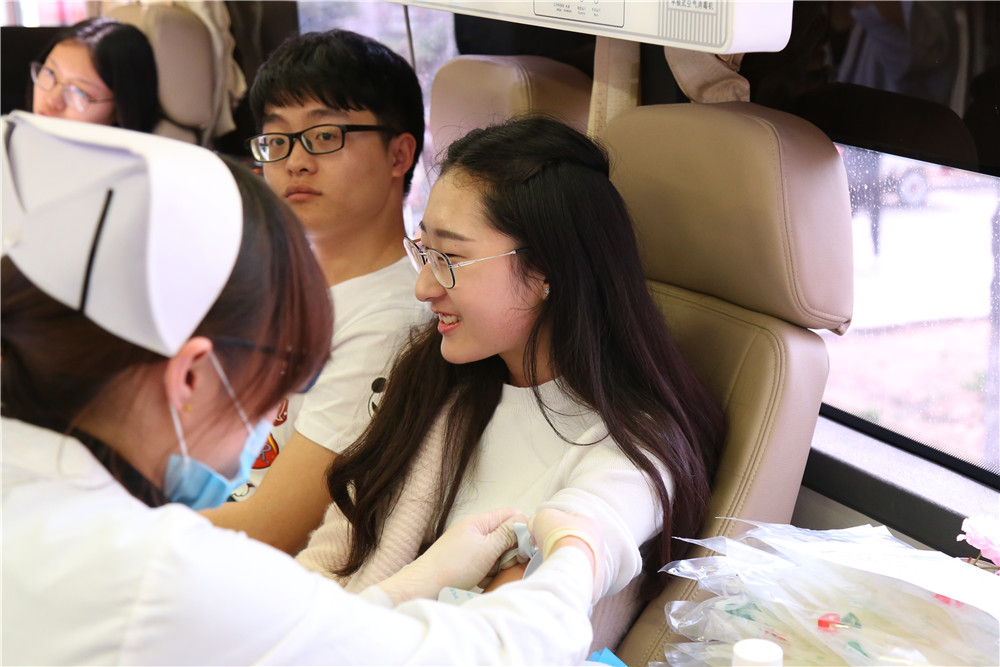 活動期間,宿舍中心廣場前來獻血的同學絡繹不絕,獻血車前排起了長長的隊伍,獻血大巴內也是擠滿了人。雖然采血針插入時有一些疼痛,雖然獻血后有輕微的疲憊,但當拿到了獻血證和獻血紀念玩偶時同學臉上都流露出了幸福的微笑。有的同學已經是第二次、第三次參加獻血,較之第一獻血同學的略帶膽怯,他們更顯得無畏與沉穩,在獻血前幾天里就注意了均衡營養,為獻血提前做好了充分準備。