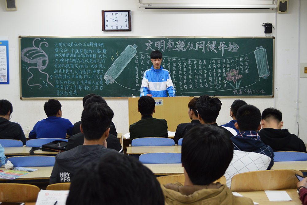 為培養同學們良好的文明習慣,4月12日,鐵道車輛與機械工程系組織各班召開了“文明禮貌從問候做起”主題班會。班會上,同學們觀看了關于文明禮貌從問候做起的短視頻,并圍繞主題發表了自己的看法。大家一致表示,要把文明禮儀交往應用到學習和生活中去,加強傳統美德宣傳弘揚,積極營造文明禮貌良好氛圍。