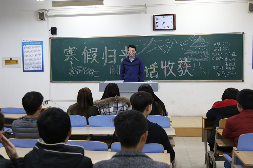 班會上,同學們積極發言,把自己在假期里所見所聞與他人分享出來。有的同學在假期中選擇繼續學習,參加了英語4、6級的培訓,為下一步的升本考研奠定了基礎;有的選擇出去旅行,增長了見識也提高了自己的適應能力。班會最后,同學們就“在新學期中如何更好地學習”這一話題展開了熱烈討論,并暢談了自己的新學期計劃。大家一致表示,會盡快融入新學期的學習和生活中,爭取在新學期取得更大成績。