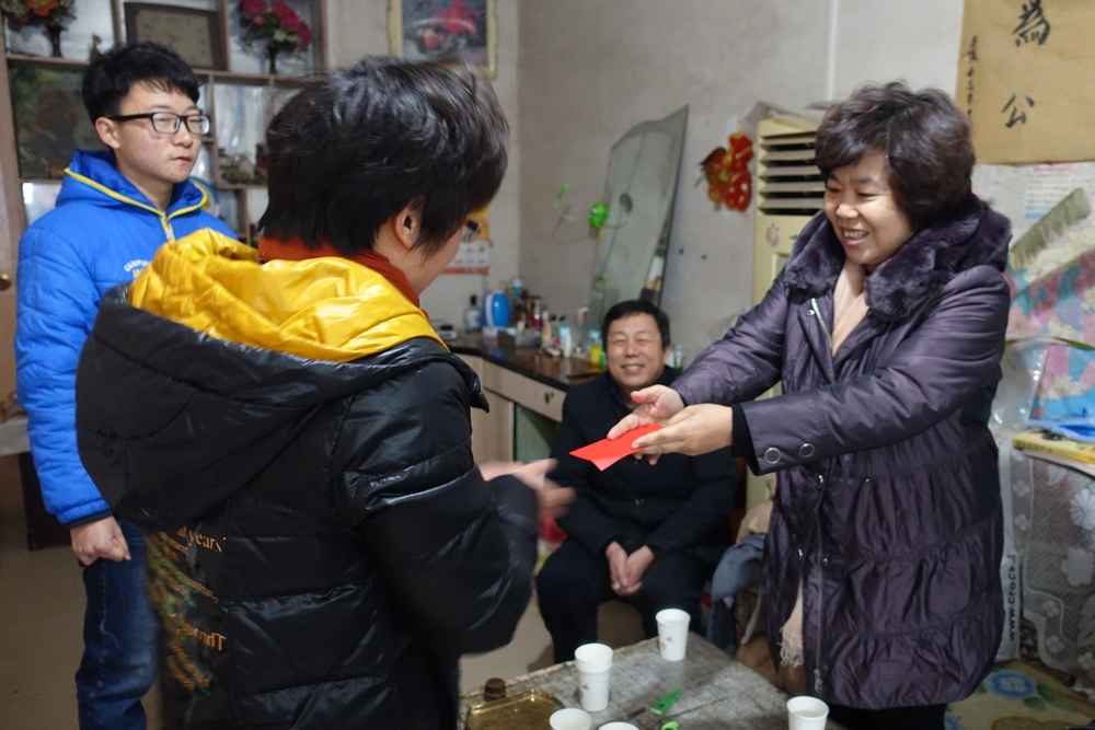 在菏澤曹縣、鄄城縣和濟寧梁山縣,祝瑞花一行深入學生家中,為他們送去慰問品和慰問金,表達學院的關心和祝福。通過與學生家長傾心交談,充分了解了學生的家庭情況和實際困難,并勉勵同學正視困難,努力學習,奮發圖強,早日成才。學院領導和老師在這寒冷冬季的到訪,為學生家庭帶去了濃濃溫暖和關懷,為學生更好的自我發展伸出一只援手。受訪學生及家長對學院的關懷表達了深深的感謝,并表示今后一定會努力學習,長知識、增才干、回報父母、回報學校、回報社會,早日為國家做貢獻。