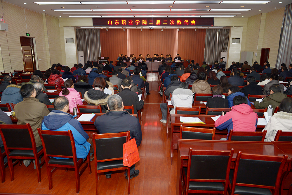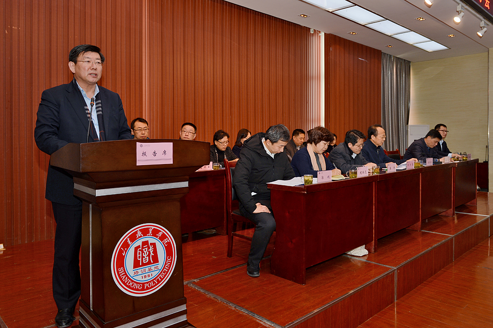 1月14日,我院召開第二屆教職工代表大會第二次會議,聽取院長秦河作的關于學院“十三五”發展規劃編制情況的說明,聽取副院長徐冬作的第二屆教職工代表大會第一次會議提案審查處理工作報告,審議并表決通過了《山東職業學院“十三五”發展規劃》決議(草案)和《山東職業學院系部教職工大會實施辦法》決議(草案)。學院黨委書記王榮昌在會上講話,工會主席王功喜主持大會。