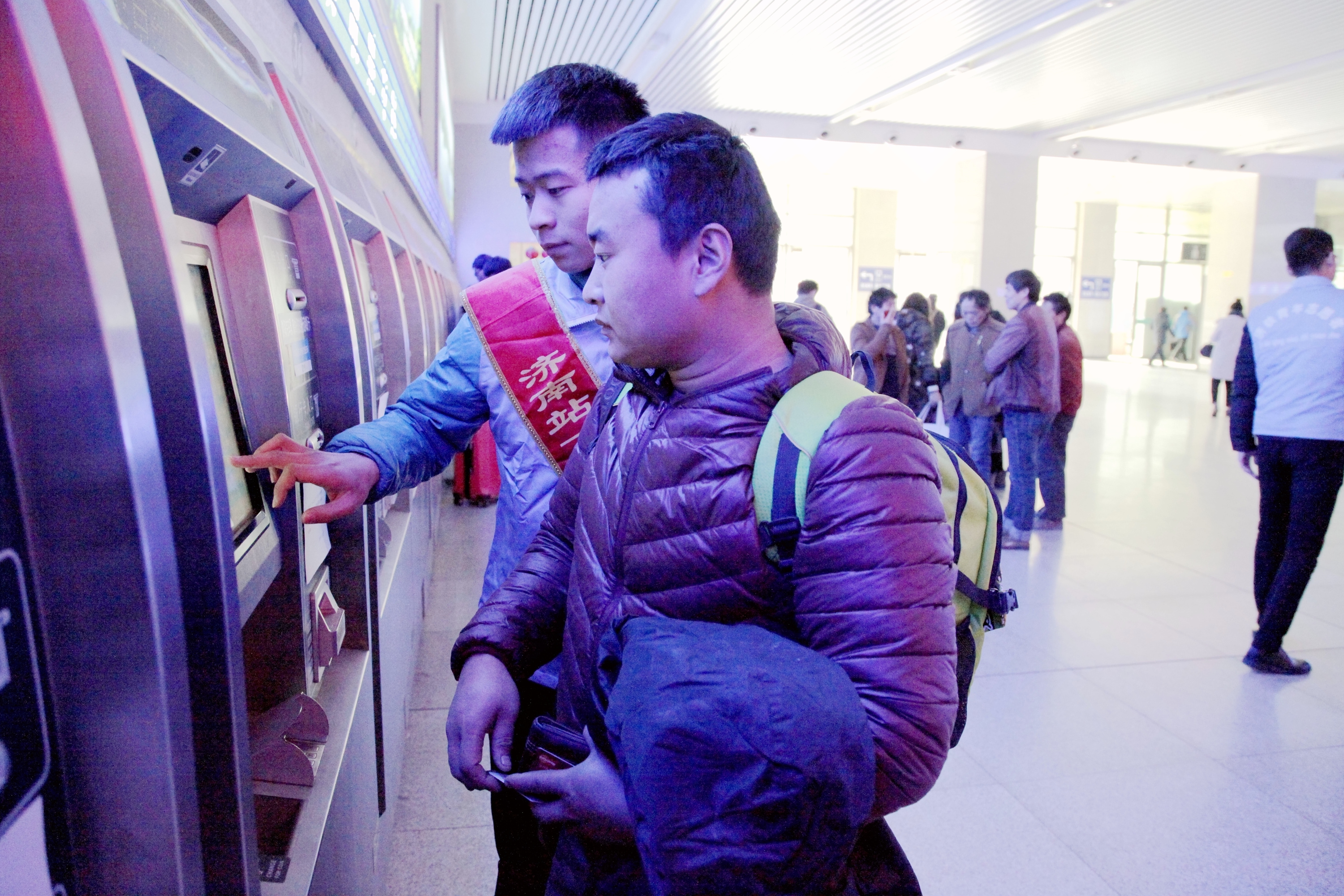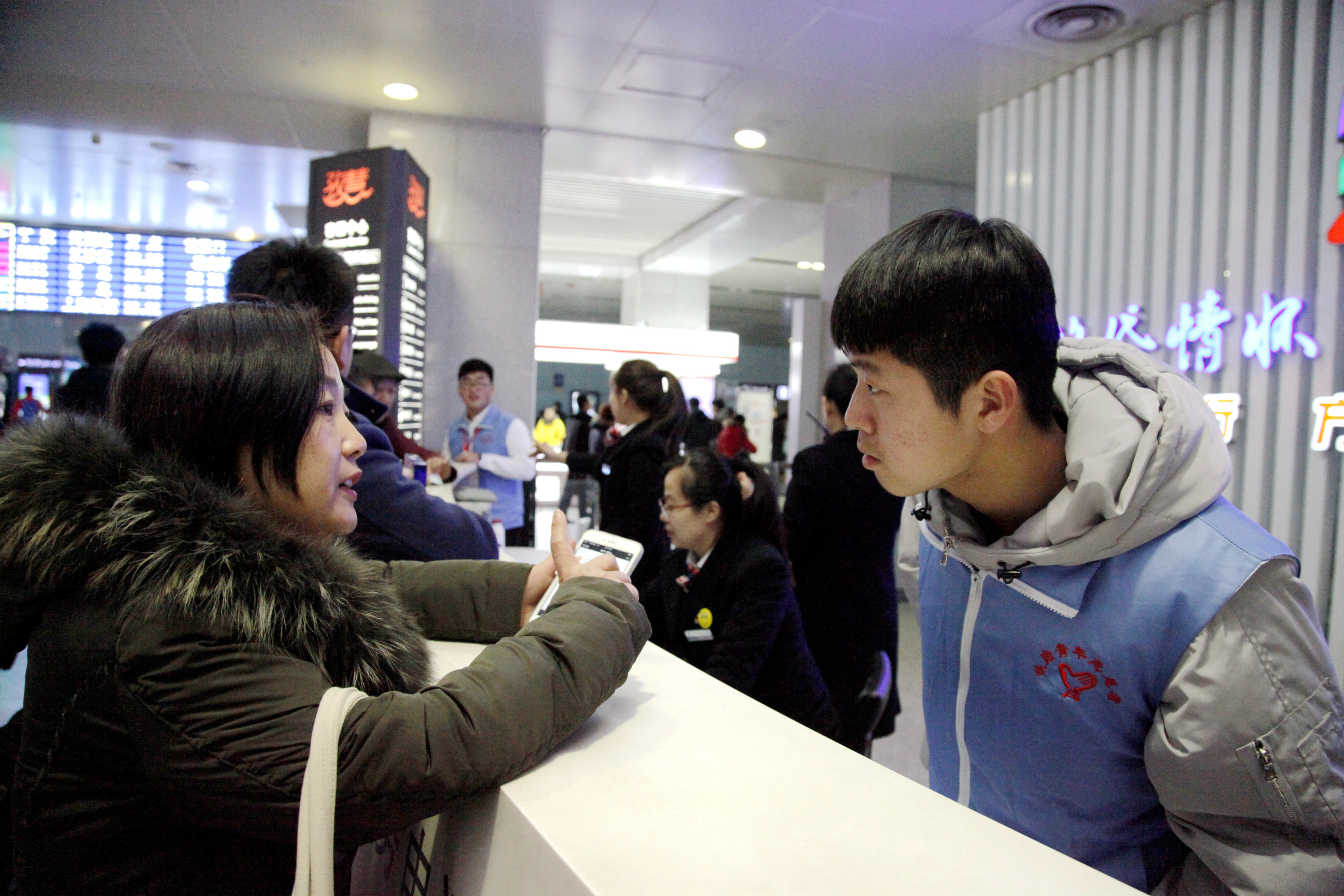 2017年1月13日,2017年鐵路春運拉開大幕,大批旅客踏上回家之路,除了忙碌的鐵路部門工作人員外,還有一群大學生志愿者活躍在濟南鐵路局的各個服務崗位上。他們彬彬有禮地為每位前來咨詢的旅客答疑解惑,或熱情地幫助一些不方便的旅客提拿行李,這些被旅客們稱為“可愛藍精靈”的大學生就是山東職業學院“紅藍青”志愿者協會的春運志愿者們。在售票廳、進站口、候車室,都有他們忙碌的身影,他們用實際行動詮釋奉獻與擔當,弘揚正能量,溫暖回家路。
