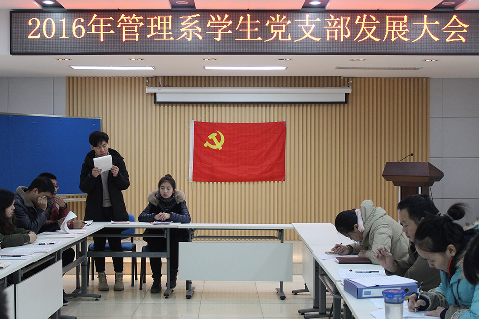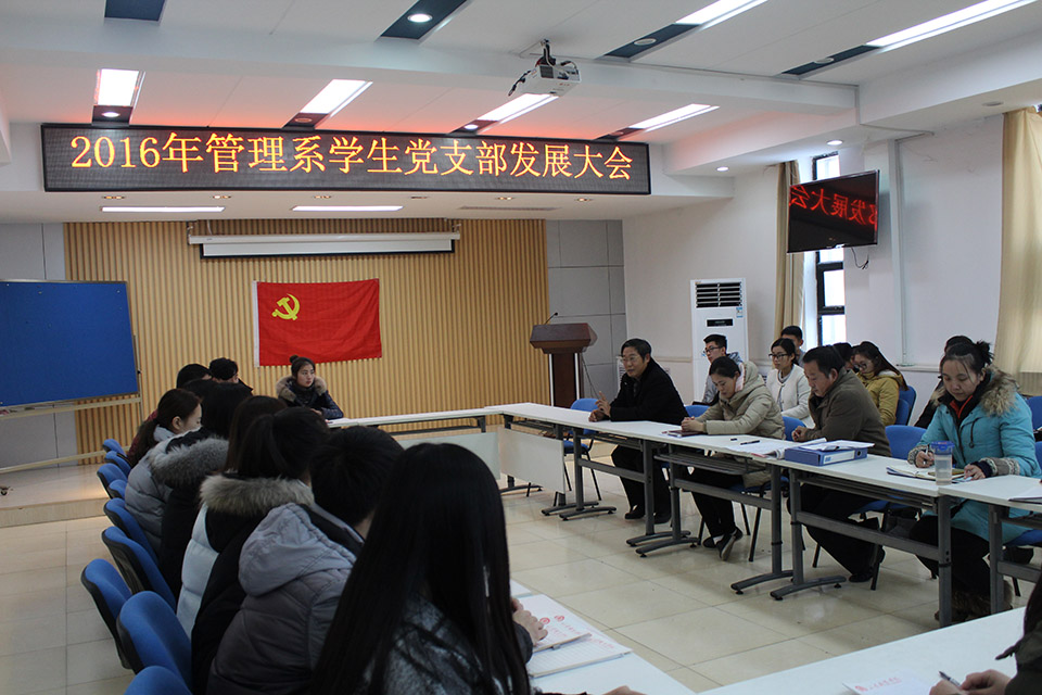 12月29日,鐵道運輸與財經管理系學生黨支部召開黨員發展大會,系黨總支書記呂立寧出席會議并講話,系學生黨支部書記欒金志主持會議。