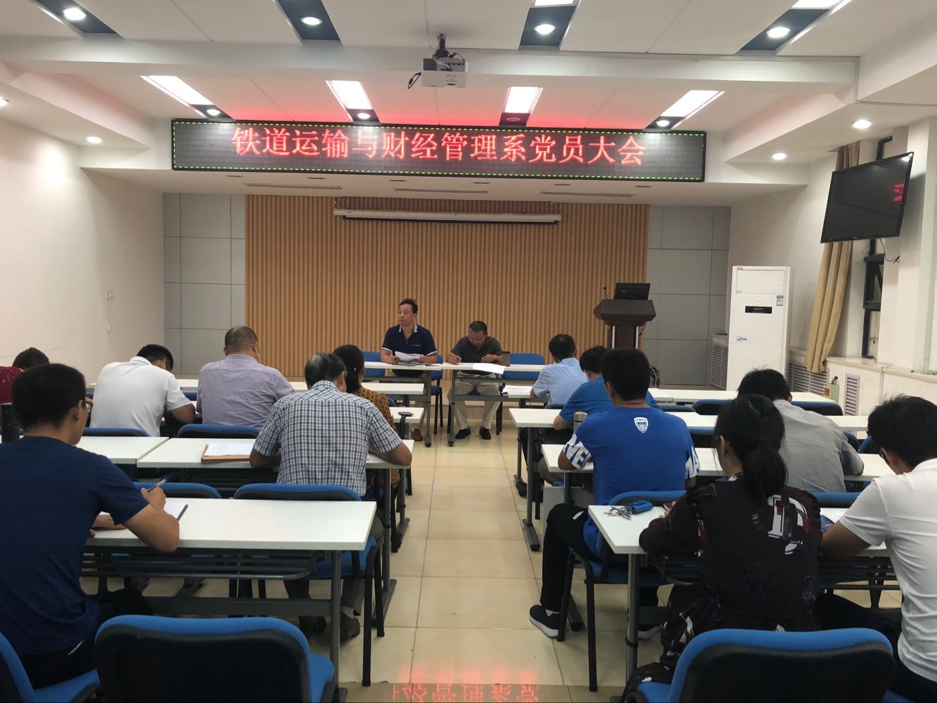 9月13日下午,鐵道運輸與財經管理系召開黨員大會,部署新學期黨員學習計劃。
