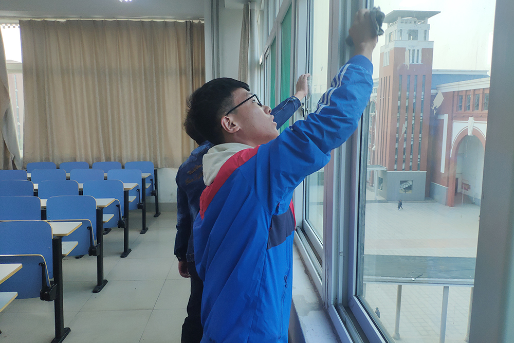 本次活動是對五號教學樓進行衛生清潔。活動中,同學們分工明確、互相配合,認真清掃教室的每一個角落,充分發揚不怕臟、不怕累的精神。經過近一個小時的義務勞動,教室內煥然一新。看著打掃干凈的教室,一位參加義務勞動同學表示:作為一名大一新生,我們要樹立主人翁意識和尊重他人勞動的責任意識,為創建整潔、文明、和諧的校園環境貢獻自己的力量。